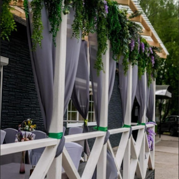 Уютный и просторный банкетный зал имеет гармоничный и изящный интерьер и подойдет для оформления свадьбы в разнообразных цветовых стилях.