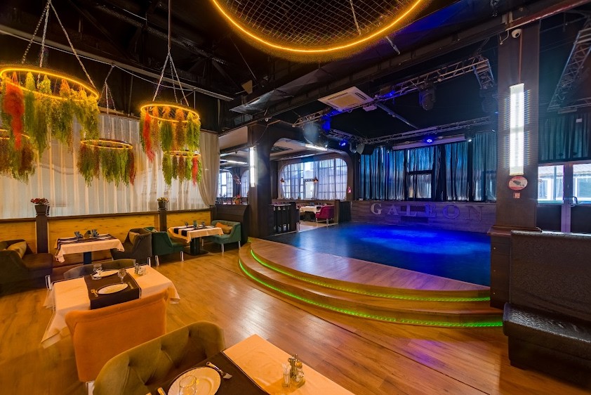 В ресторане «Галеон» вас ждет большой просторный зал для проведения мероприятий, а также выделенная огороженная зона на 25-30 человек.
